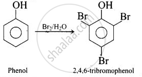 Phenol (b) rects with \[\ce{Br2}\] to form 2, 4, 6-tribomophenol.