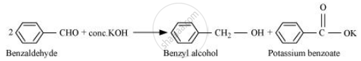\ce{2\phantom{...}C = O + conc.KOH -> H - C - OH + C - OK}\\