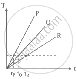 Which of the substances P, Q, or R has the lowest specific heat? The temperature v/s time graph is shown ______.