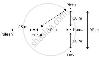- Nilesh is at a distance of 25 m in the west of Ankur.