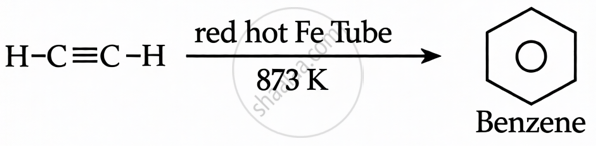 \[\ce{H - C ≡ C - H ->[red hot iron tube][at 873 K]}\]