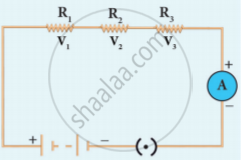 With the help of a circuit diagram derive the formula for the resultant resistance of three resistances connected: