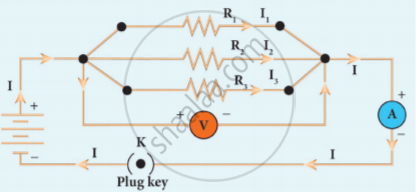 I = `"V"/"R"_1 + "V"/"R"_2 + "V"/"R"_3` ...(4)