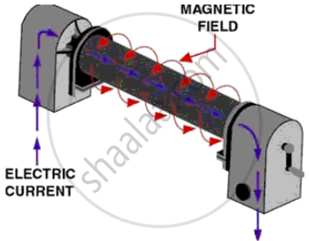 The magnetisation of steel needle using electric current: Wind a length of copper wire around a steel needle and connect it to battery and switch. After the current is passed through the copper wire for some time, we will notice that the steel needle got magnetised.