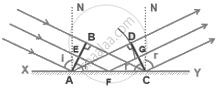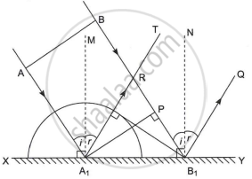 A plane wavefront AB is advancing obliquely towards the plane reflecting surface XY. The AA1 and BB1 are incident rays.