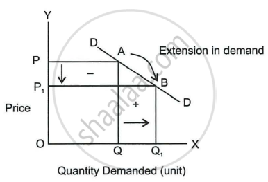 Diagrammatic Explanation: In the diagram, when price falls from OP to OP1, demand expands from OQ to OQ1.