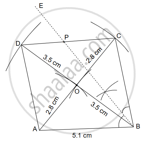 Take AO = OC = 2.8 cm along one line, and BO = OD = 3.5 cm along another line through O to locate C and D. - Join A to C, B to C, A to D, and B to D to get parallelogram ABCD.