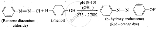 Benzene diazonium chloride reacts with electron-rich aromatic compounds like phenol, aniline to form brightly coloured azo compounds. Coupling generally occurs at the para position. If para position is occupied then coupling occurs at the ortho position. Coupling tendency is enhanced if an electron-donating group is present at the para-position to \[\ce{-\overset{+}{N2}Cl^-}\] group. This is an electrophilic substitution.