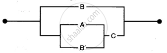 A, B and C represent switches in ‘on’ position and A’, B’ and C’ represent them in ‘off position. Using Boolean algebra, simplify the function and construct an equivalent switching circuit.