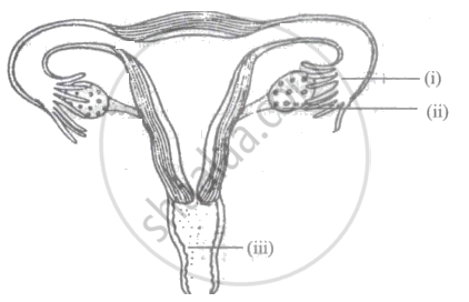 Identify the labels (i, ii and iii) in the given diagram of the female reproductive system.