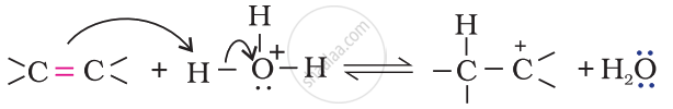 Write the mechanism of hydration of ethene to yield ethanol.