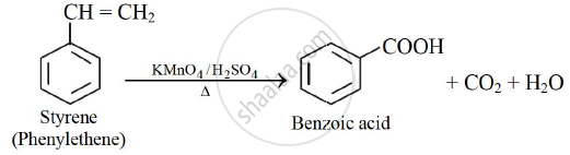 Acidic potassium dichromate or acidic potassium permanganate oxidizes styrene (phenylethene) into benzoic acid.