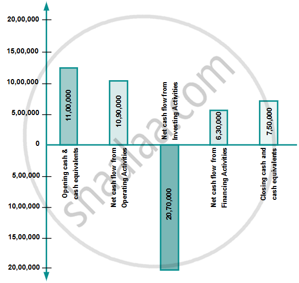 Comments: Cash outflow due to Investing activities is ₹20,70,000, whereas cash inflow from operating and financing activities is only ₹10,90,000 and ₹6,30,000, respectively. As a result, there is a net cash outflow of ₹3,50,000. Fixed Assets should have been purchased from long-term sources.