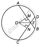 रचना - OM ⊥ AB और ON ⊥ CD खींचिए और OE को मिलाइए जहाँ O वृत्त का केंद्र है।