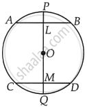 दिया गया है - AB और CD एक वृत्त की दो जीवाएँ हैं जिनका केंद्र O है और PQ एक व्यास है जो जीवा AB और CD को क्रमश : L और M पर समद्विभाजित करता है और व्यास PQ वृत्त के केंद्र O से गुजरता है।