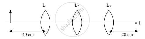 You are given three lenses L1, L2 and L3 each of focal length 20 cm. A object is kept at 40 cm in front of L1, as shown. The final real image is formed at the focus ‘I’ of L3. Find the separation between L1, L2 and L3.