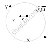 A point charge q moving with speed v enters a uniform magnetic field B that is acting into the plane of the paper as shown. What is the path followed by the charge q and in which plane does it move?