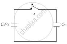 A capacitor of capacity C1 is charged to the potential of V0. On disconnecting with the battery, it is connected with an uncharged capacitor of capacity C2 as shown in the adjoining figure. Find the ratio of energies before and after the connection of switch S.