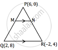Points P(6, 0), Q(2, 8) and R(–2, 4) are vertices of ΔPQR. It is given that MN || QR such that `(PM)/(MQ) = 1/3`. Using distance formula and ratio formula, show that `(MN)/(QR) = 1/4`.