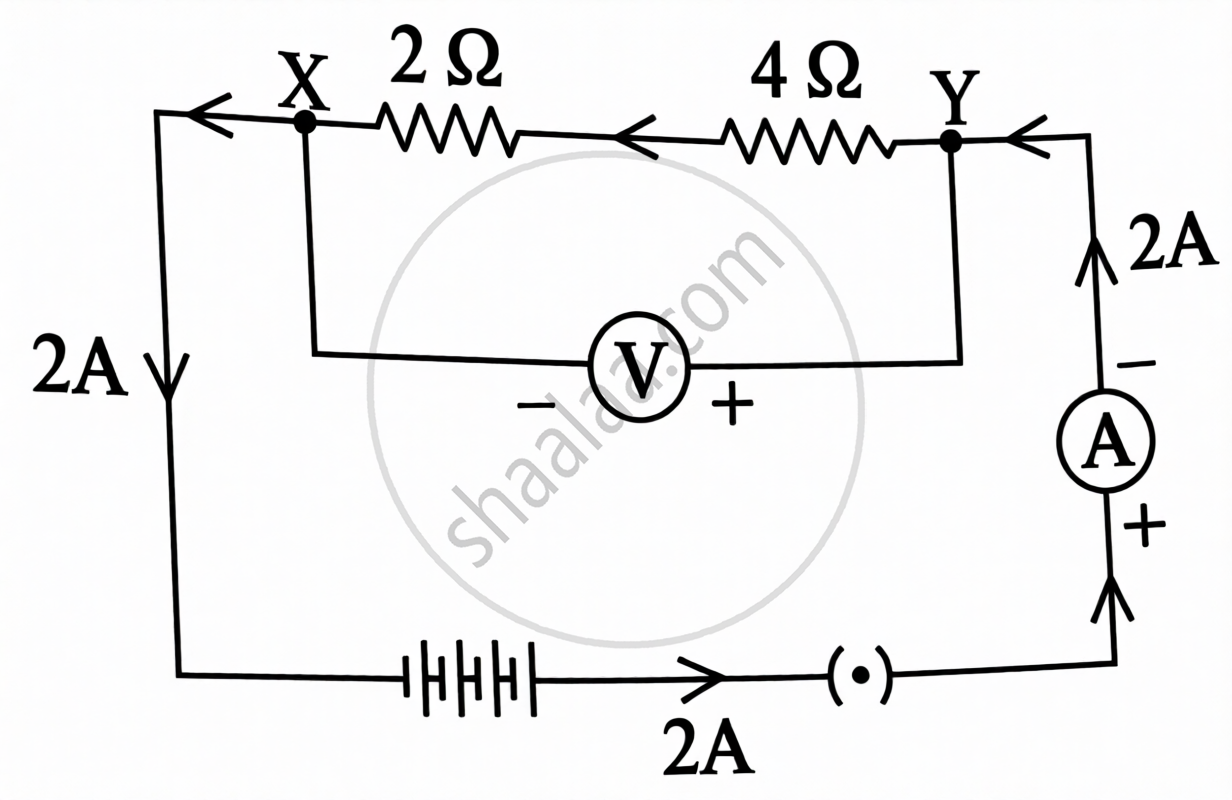Study the given electric circuit in which 2 A electric current is flowing between points X and Y.