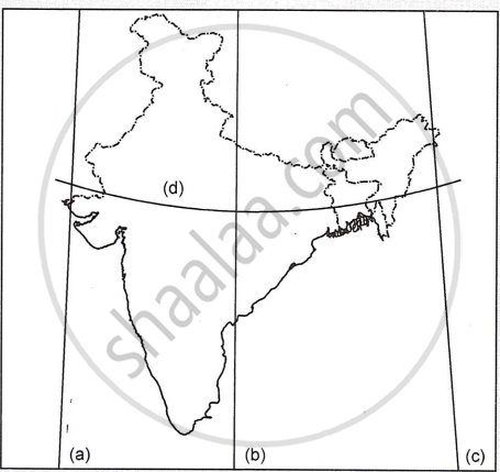 With reference to the extent of India, write the angular values of the points marked as (a), (b), (c) and (d) in the map given below: