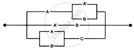 A, B and C represent switches in ‘on’ position and A’, B’ and C’ represent them in ‘off position. Using Boolean algebra, simplify the function and construct an equivalent switching circuit.