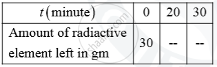 Copy and complete the following table for a radioactive element whose half-life is 10 minutes. Assume that you have 30g of this element at t = 0.