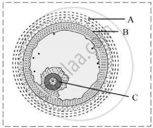Identify A, B and C from the given diagram of Graafian follicle and mention their significance: