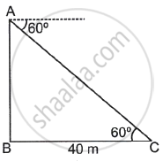 From the top of building AB, a point C is observed on the ground whose angle of depression is 60° and which is at a distance of 40 m from the base of the building. Complete the following activity to find the height of building AB.