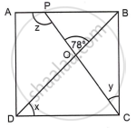 ABCD is a square. Diagonal DB and CP intersect at O. ∠BOP = 78°. Find x, y and z.