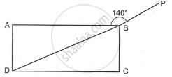 ABCD is a rectangle. DB is extended to point P. ∠PBA = 140°. ∴ find ∠DBC.
