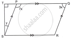 PQRS is a parallelogram, QP is extended to T so that ∠STP = 90°. Find x and y.