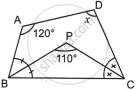 Assertion: In the quadrilateral ABCD, the bisectors of angles B and C meet at P. If ∠BPC = 110°, ∠A = 120°, then x = 100°.