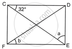 CDEF is a rectangle. Find the angles a and b, if ∠DCE = 32°.