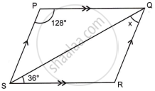 In the parallelogram PQRS, ∠P = 128° and ∠QSR = 36°. Find x.