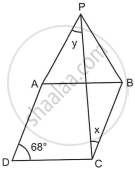 ABCD is a rhombus, ΔPAB is equilateral, ∠D = 68°. Find the values of x and y.