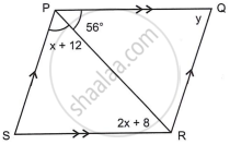 In the parallelogram PQRS ∠P = 3x – 10°, ∠Q = 2x + 20°. ∴ The measure of x is ______.