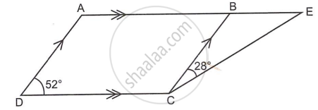 In the given figure AB || DC, AD || BC ∠D = 52° and ∠BCE = 28°. ∴ ∠E is ______.