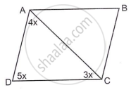 In the parallelogram ABCD, ∠D = 5x, ∠DAC = 4x and ∠ACD = 3x. Find the angles of ΔABC.