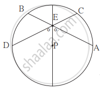 आकृति में P वृत्त का केंद्र है। जीवा AB तथा जीवा CD परस्पर व्यास के बिंदु E पर प्रतिच्छेदित करते हैं। यदि `angle`AEP ≅ `angle`DEP तो सिद्ध कीजिए कि AB = CD