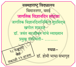 Using Balbharati मराठी (कॉम्पोझिट) आंतरभारती [इंग्रजी] इयत्ता ९ महाराष्ट्र राज्य मंडळ solutions उपयोजित लेखन exercise by students is an easy way to prepare for the exams, as they involve solutions arranged chapter-wise and also page-wise. The questions involved in Balbharati Solutions are essential questions that can be asked in the final exam. Maximum Maharashtra State Board मराठी (कॉम्पोझिट) आंतरभारती [इंग्रजी] इयत्ता ९ महाराष्ट्र राज्य मंडळ students prefer Balbharati Textbook Solutions to score more in exams.