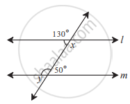 In the given figure, measures of some angles are shown. Using the measures find the measures of ∠x and ∠y and hence show that line l || line m.