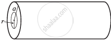 The figure shows a cylindrical wire of diameter a, carrying a current I. The current density in the wire is in the direction of the axis and varies linearly with radial distance r from the axis according to the relation J = `"J"_0 "r"/"a"`. Obtain a magnetic field B inside the wire at a distance r from its center.