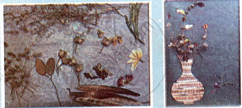 Stick dried grass, leaves and flowers on a paper to make a birds' nest picture.