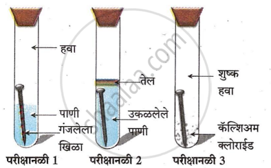 खाली गंजणे याची क्रिया दिली आहे. या क्रियेत तीनही परीक्षानळ्यांचे निरीक्षण करून खालील प्रश्‍नांची उत्तरे द्या.