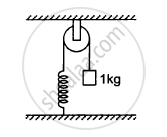 The pulley shown in the following figure has a radius of 20 cm and moment of inertia 0⋅2 kg-m2. The string going over it is attached at one end to a vertical spring of spring constant 50 N/m fixed from below, and supports a 1 kg mass at the other end. The system is released from rest with the spring at its natural length. Find the speed of the block when it has descended through 10 cm. Take g = 10 m/s2.