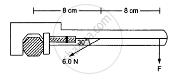 When a force of 6⋅0 N is exerted at 30° to a wrench at a distance of 8 cm from the nut it is just able to loosen the nut. What force F would be sufficient to loosen it if it acts perpendicularly to the wrench at 16 cm from the nut?