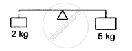 A light rod of length 1 m is pivoted at its centre and two masses of 5 kg and 2 kg are hung from the ends as shown in the following figure. Find the initial angular acceleration of the rod assuming that it was horizontal in the beginning.