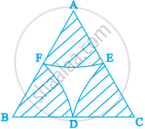 In figure, arcs are drawn by taking vertices A, B and C of an equilateral triangle of side 10 cm. to intersect the sides BC, CA and AB at their respective mid-points D, E and F. Find the area of the shaded region (Use π = 3.14).