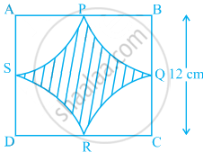 Find the area of the shaded region in figure, where arcs drawn with centres A, B, C and D intersect in pairs at mid-points P, Q, R and S of the sides AB, BC, CD and DA, respectively of a square ABCD (Use π = 3.14).